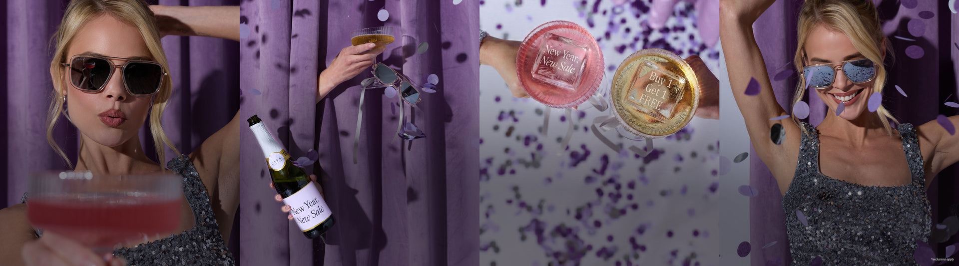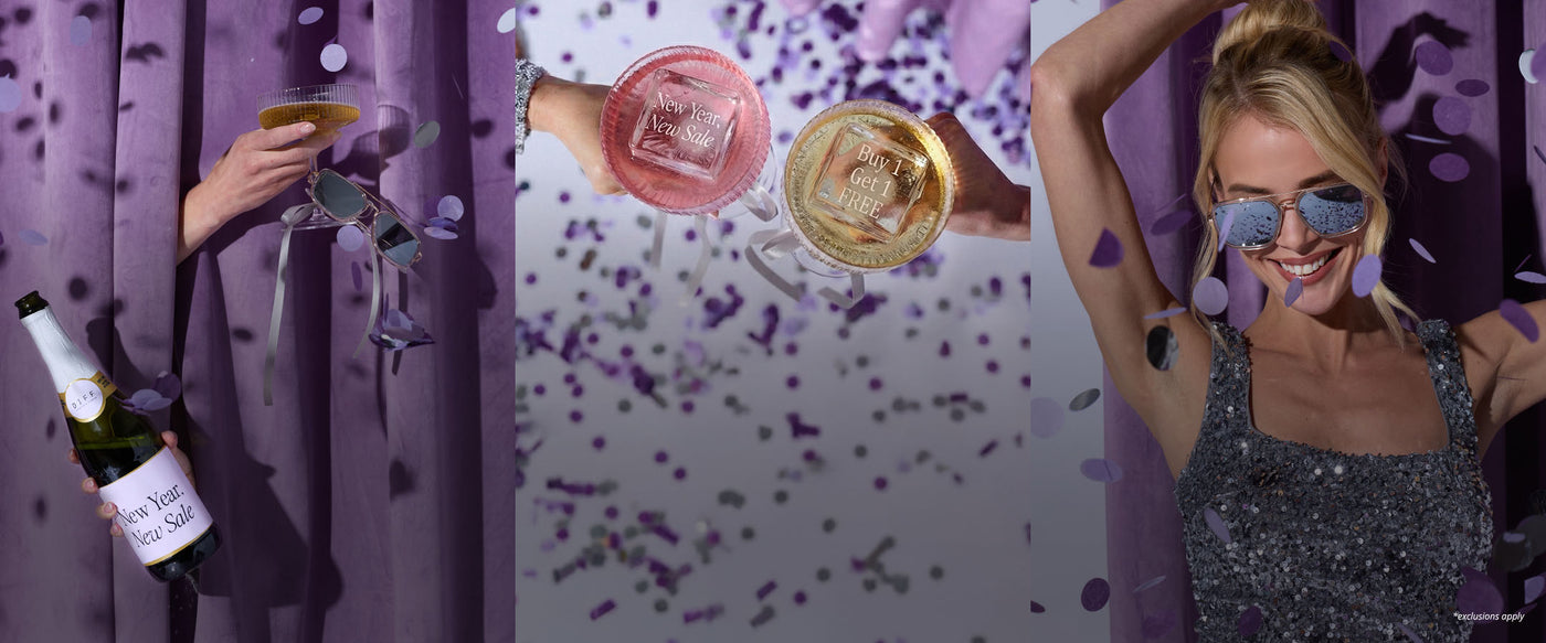 Start the new year in fresh style with Buy 1, Get 1 Free sunnies and glasses or Buy 2, Get 3 Free deals when you shop at least one sale item. Happy new you!
