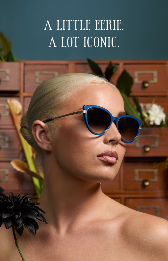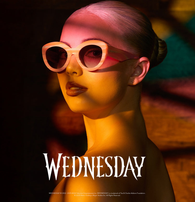 This hauntingly chic collab brings your favorite Wednesday characters to life through bold shapes, unexpected details, and supernatural-level style. With exclusive touches like the Nevermore Academy crest and quote engravings, these sunnies are the perfect way to stand out in true Wednesday fashion.