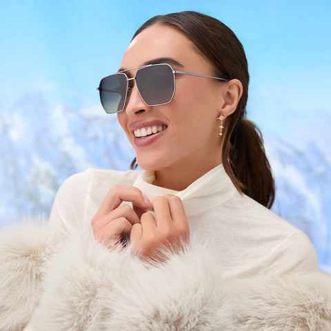 50% OFF Black Friday Sale diff eyewear featuring the tosca ii aviator sunglasses with a snowbound frame and grey gradient with silver flash lenses front view